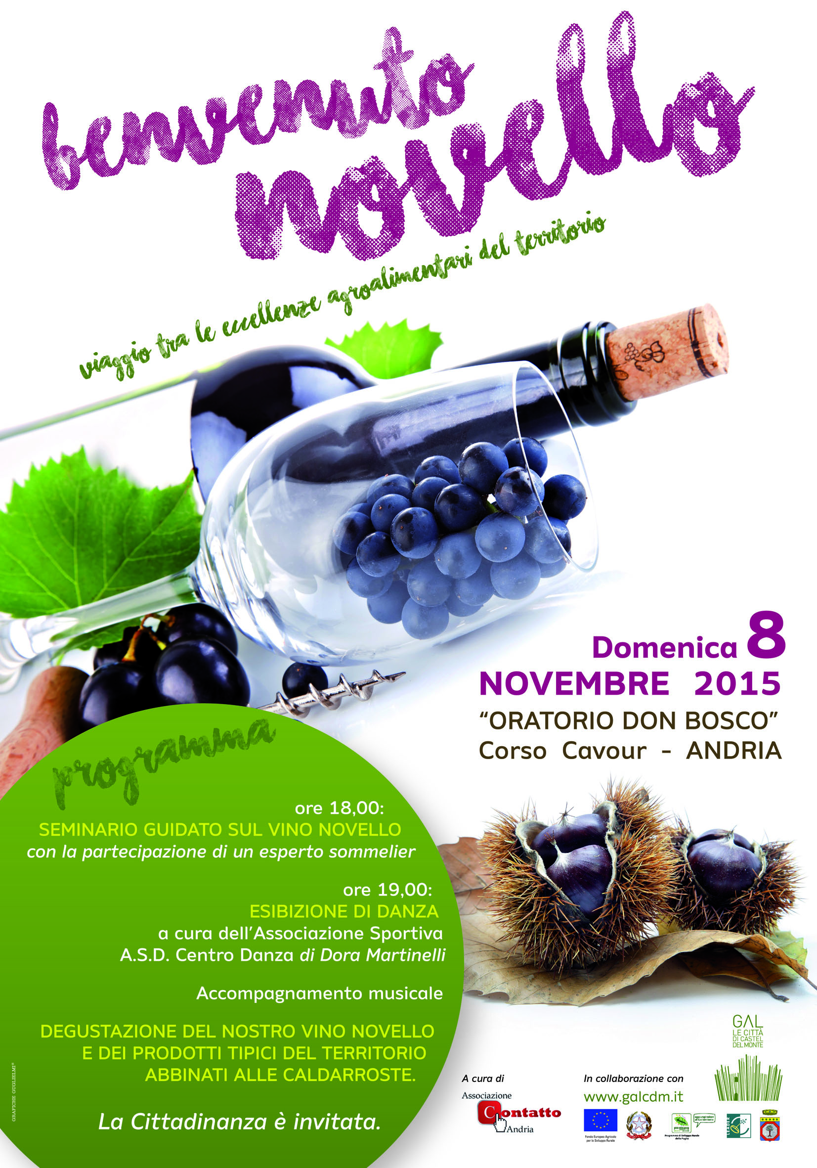 Il Gal “Le Città di Castel del Monte” in collaborazione con l’Associazione “Contatto” di Andria, organizza domenica 8 novembre, l’evento “Benvenuto Novello 2015”, un percorso enogastronomico nel segno delle tradizioni novembrine.