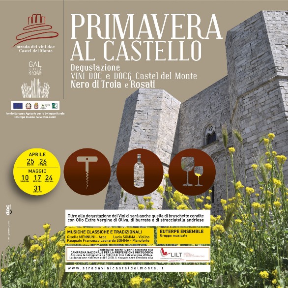 Torna l’appuntamento con “Primavera al Castello” che si svolgerà presso Castel del Monte (Andria) il 25 e 26 aprile e a maggio nei giorni 10 – 17 – 24 – 31.